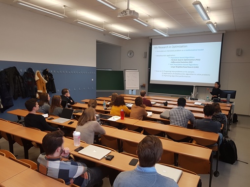 Omar Bottesi, research assistant, and Luca Gualtieri, PhD student from the Free University of Bolzano spent a month at the "Excellence Center in Logistics and Supply Chain Management Laboratory" where they had the opportunity to share ideas, moments of discussion, to do research and learn new techniques. They had the opportunity to participate in the open day of the department of mechanical engineering on 5-8 November and to visit the "Motion and Control Laboratory" of Professor Theeraphong Wongratanaphisan. In the pictures, part of the group of the "Excellence Center in Logistics and Supply Chain Management Laboratory" and Dr. Omar Bottesi, who presented his research. In the other image, a moment of discussion of researchers and PhD students at the Department of Mechanics who built a robot for collecting mango from the tree.